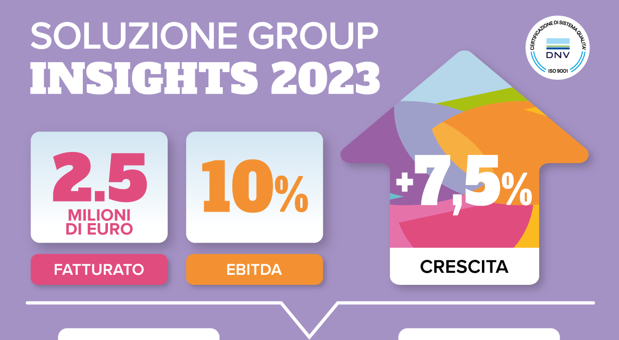 Il 2023 è un anno da ricordare per Soluzione Group, che oltre a celebrare un importante traguardo del suo percorso avviato nel 1988, ha visto crescere nell’ultimo anno il proprio volume d’affari di 7.5 punti percentuali registrando il miglior fatturato di sempre (2.5 MLN); cresce l’EBIDTA, che sale al 10% (+2% rispetto al 2022), a conferma della stabilità economica, derivata da una radicata storicità nel mondo della Comunicazione e da una innovativa visione delle Relazioni Pubbliche.